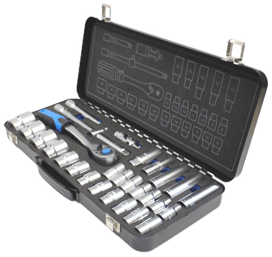 10 цен на Набор инструментов, профессиональный, металлический кейс, 29 пр., CrV, CrMo, 1/2" HOEGERT