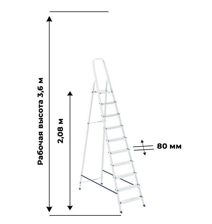 Стремянка, 10 ступеней, алюминиевая, Россия, Сибртех информация: