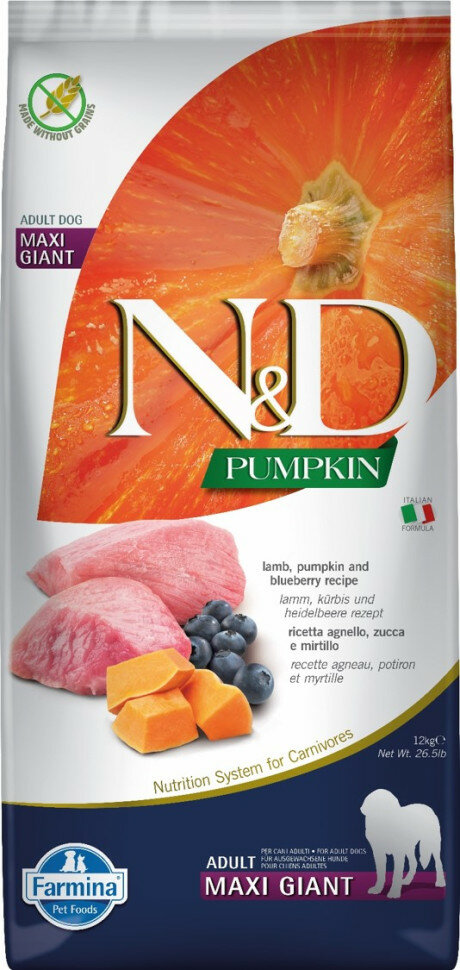 FARMINA DOG N&D GRAIN FREE PUMPKIN ADULT MAXI GIANT LAMB & BLUEBERRY беззерновой для взрослых собак крупных пород с ягненком, черникой и тыквой (12 кг)