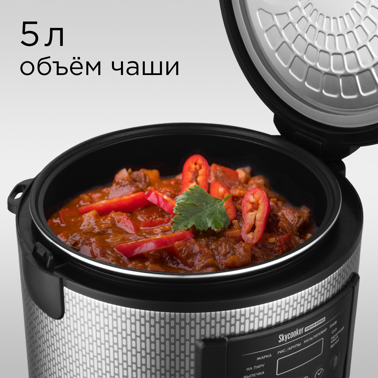 Отзыв: Я недавно приобрел мультиварку с емкостью чаши 5 литров, и это был отличный выбор для моей кухни. Она стала настоящим спасением для меня, так как я люблю готовить в больших количествах, будь то супы, тушеные блюда или выпечка, а такой объем чаши позволяет делать это без забот о размере порций. Возможность управления с телефона – это удобный инструмент, который позволяет мне контролировать процесс готовки даже не подходя к самому аппарату.