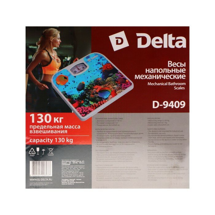 Весы напольные DELTA D-9409, механические, до 130 кг, рисунок "Подводный мир"