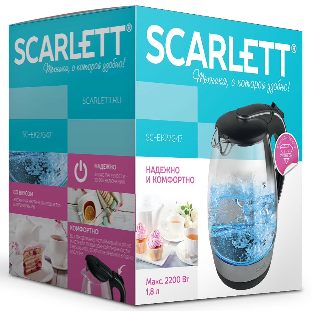 Чайник электрический Scarlett SC-EK27G47 1.8л. 2200Вт черный (корпус: стекло)