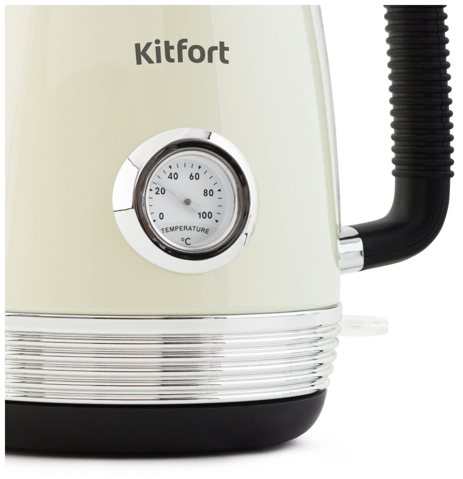 Чайник KITFORT КТ-633-3, 1,7 л, 2200 Вт, закрытый нагревательный элемент, термометр, пластик/металл, бежевый