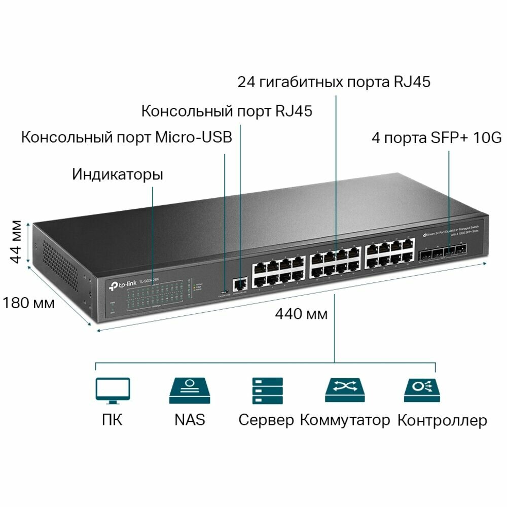 Коммутатор TP-LINK TL-SG3428X JetStream уровня 2+, 24x1000BASE-T, 4x10GbSFP информация: