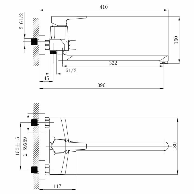 | Длина излива | 322 мм |