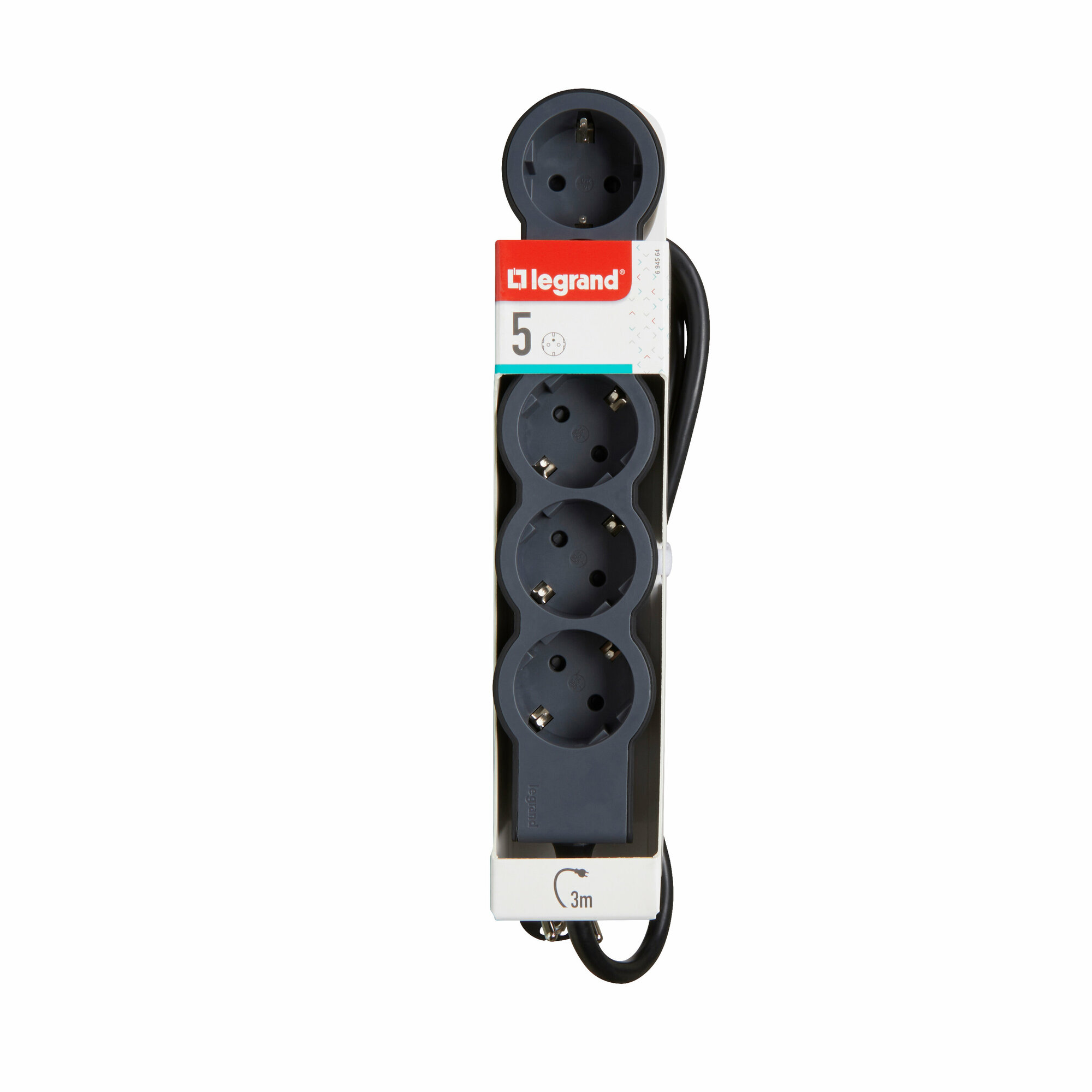 Удлинитель серии Стандарт 5 x 2К+З с кабелем 3 м., цвет: черный () LEGRAND 694564 (1 шт.)