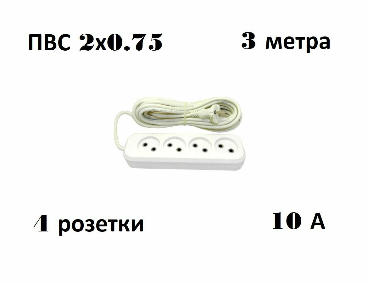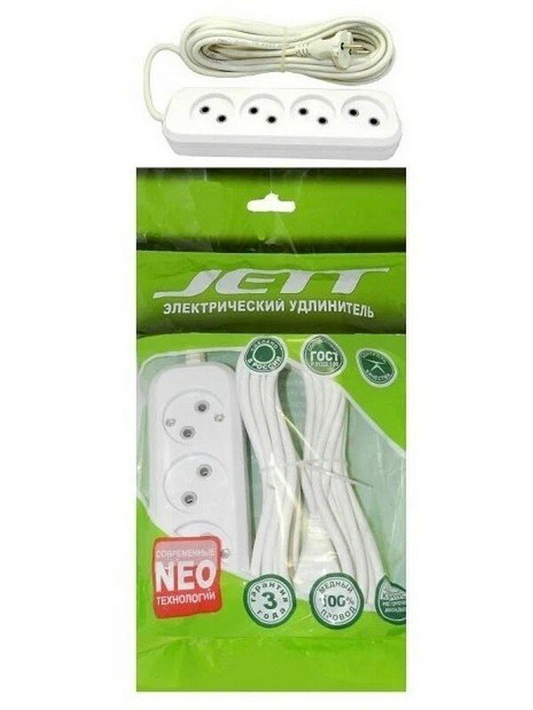 10 цен на Электрический удлинитель JETT ( джетт) 4 гнезда ( ПВС ) 3 метра