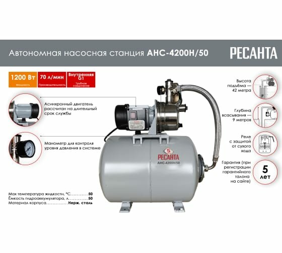 Ресанта АНС-4200Н/50 (77/1/8), Автономная насосная станция