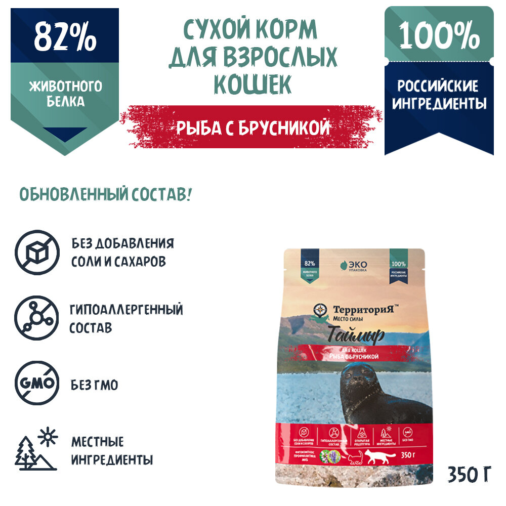Сухой корм для кошек ТерриториЯ Таймыр рыба с брусникой, 350 г информация: