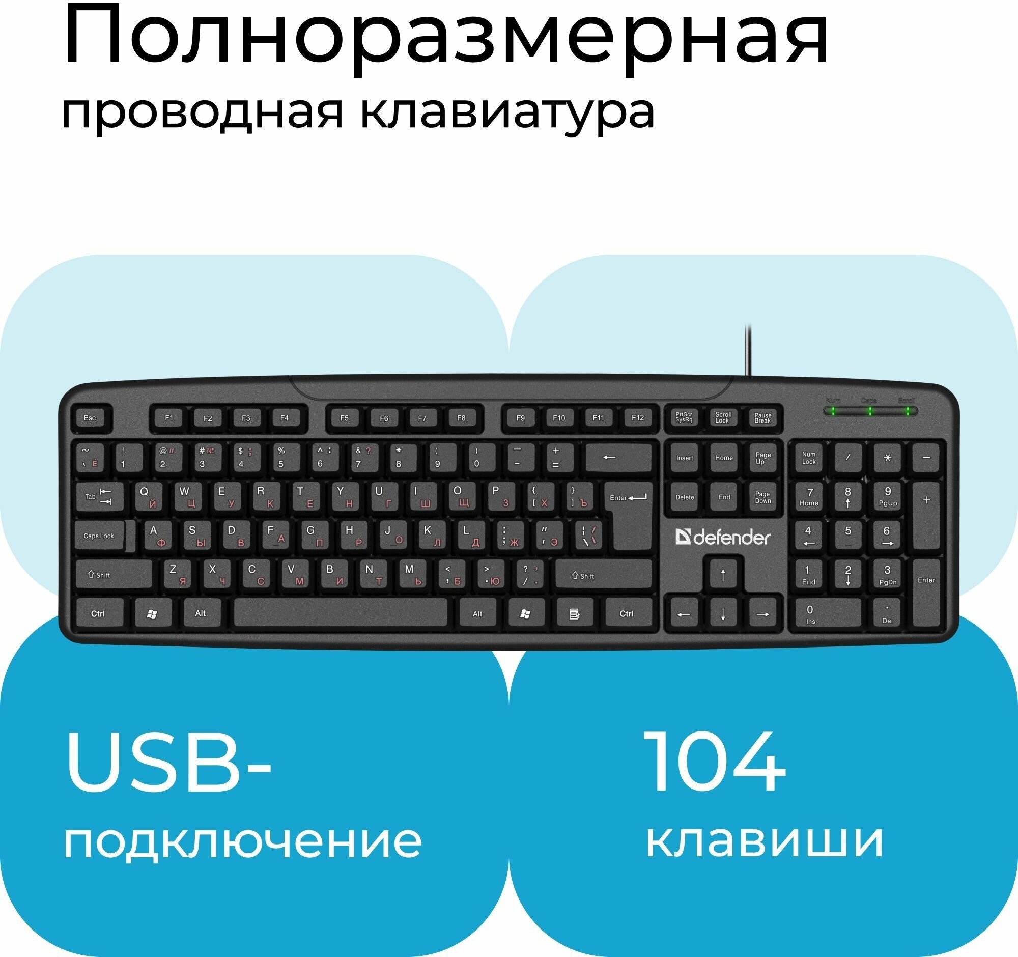 Клавиатура проводная DEFENDER Astra HB-588 RU черный, полноразмерная 45588 информация: