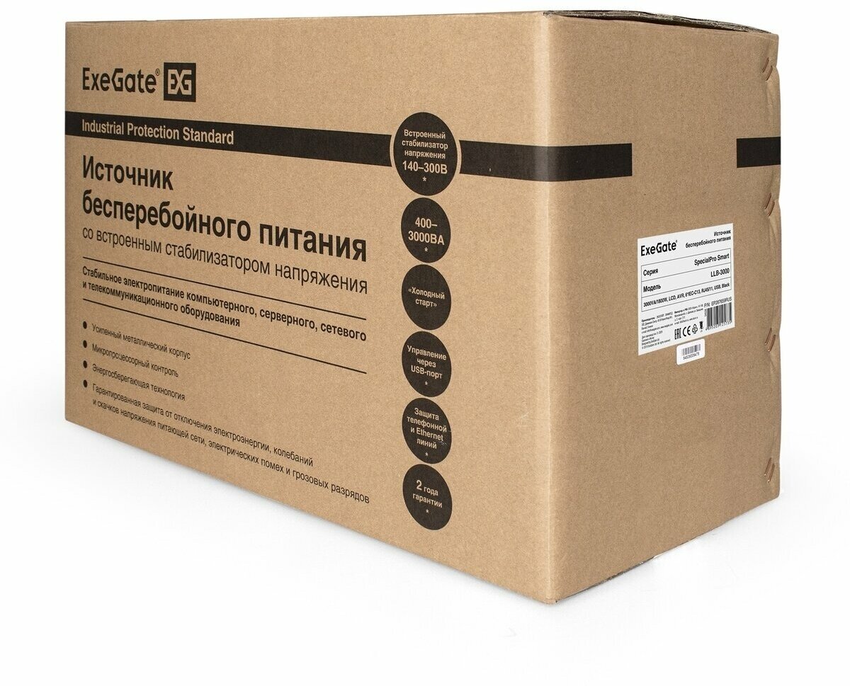 ИБП ExeGate SpecialPro Smart LLB-3000.LCD.AVR.4SH.RJ.USB <3000VA/1800W, LCD, AVR,4*Schuko,RJ45/11,USB, металлический корпус, Black> EP287660RUS информация: