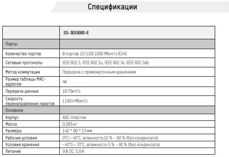 Отзывы на Коммутатор Hikvision DS-3E0508D-E L2, Unmanaged, 8 Gigabit RJ45 ports, desktop plastic switch