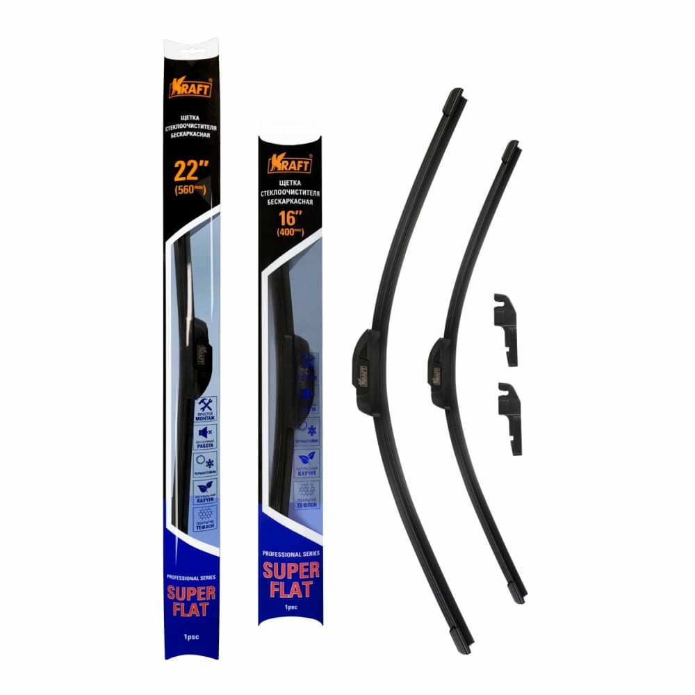 KRAFT KT830919 Щетки стеклоочистителя бeскаркасные TEFLON 550/400 ММ, 1 адаптер