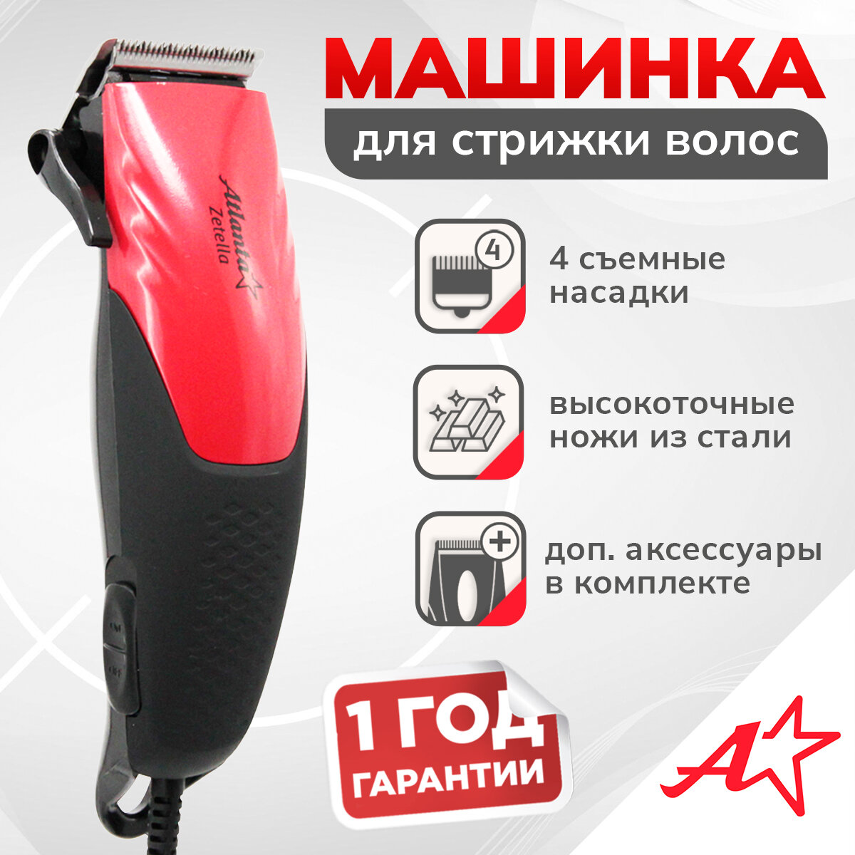 10 цен на Машинка для стрижки ATLANTA ATH-6874 10 Вт, 4 насадки, черный/красный