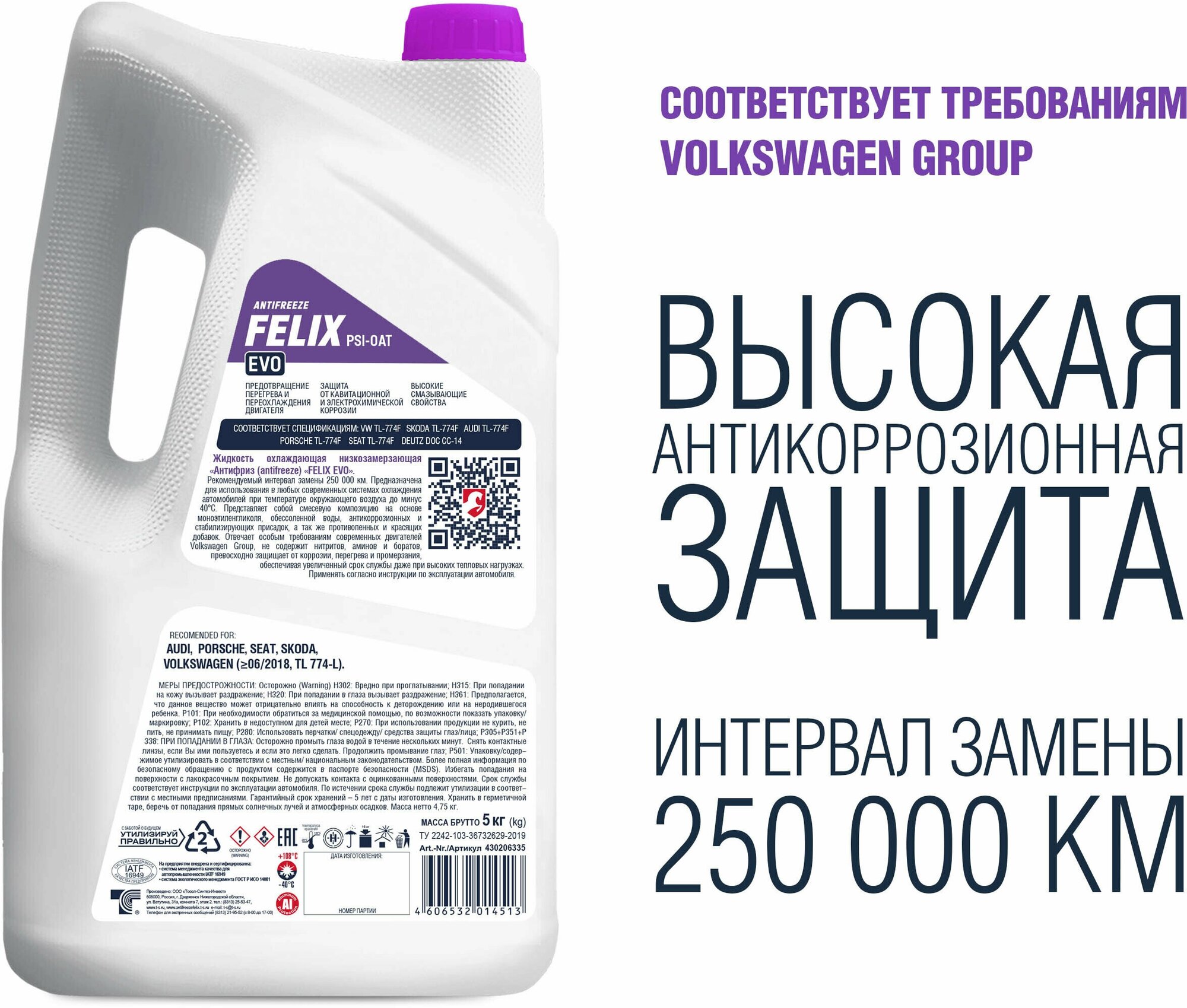 Антифриз Felix EVO G12++ 5 кг фиолетовый информация:
