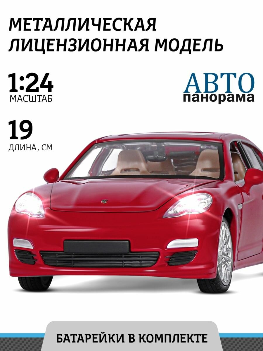 Машинка металлическая Автопанорама 1:24 Porsche Panamera S, красный, открываются двери, капот и багажник информация:
