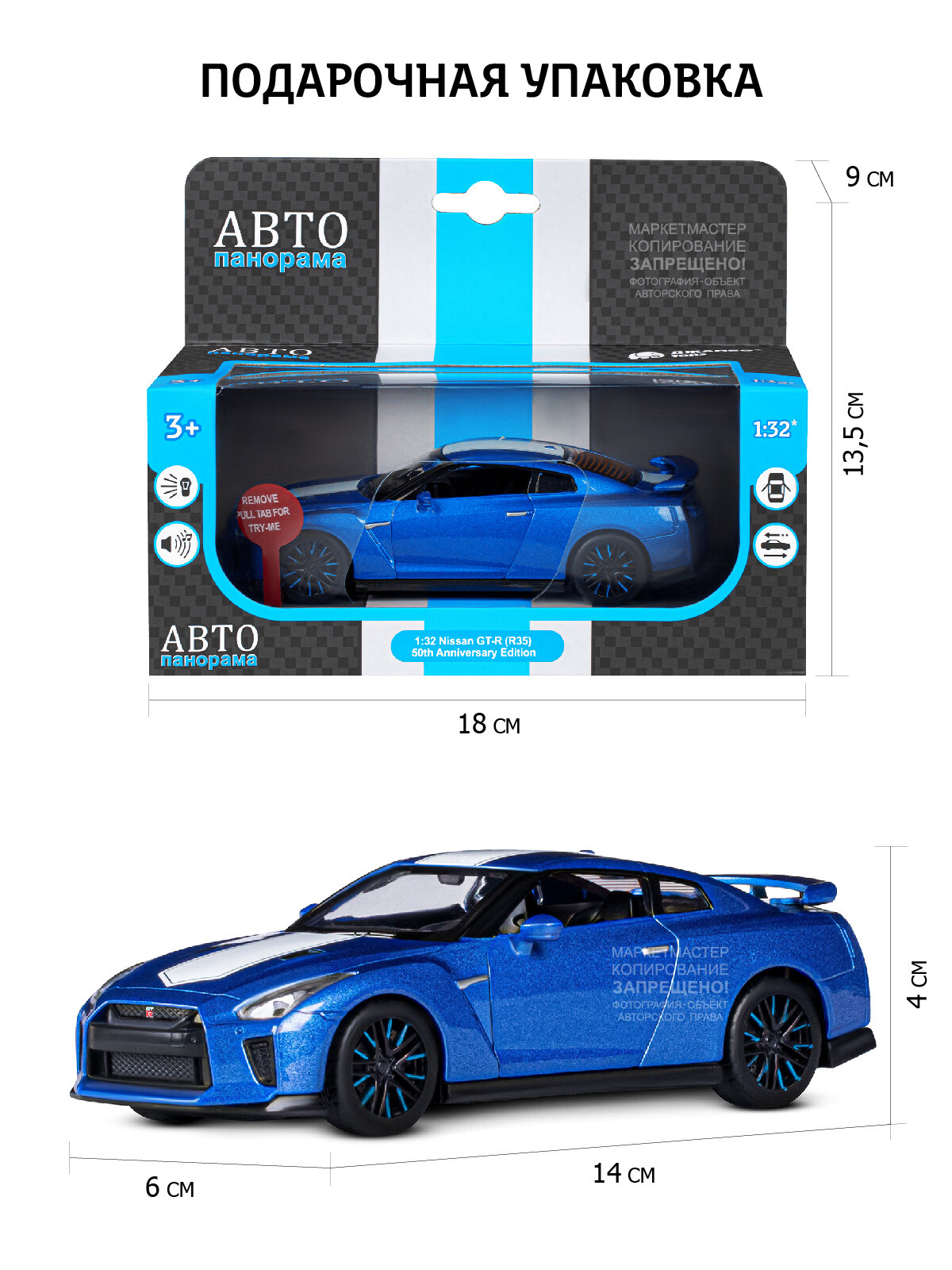 Модель машины Автопанорама "Nissan GT-R R35", синяя, масштаб 1:32 (JB1251547)