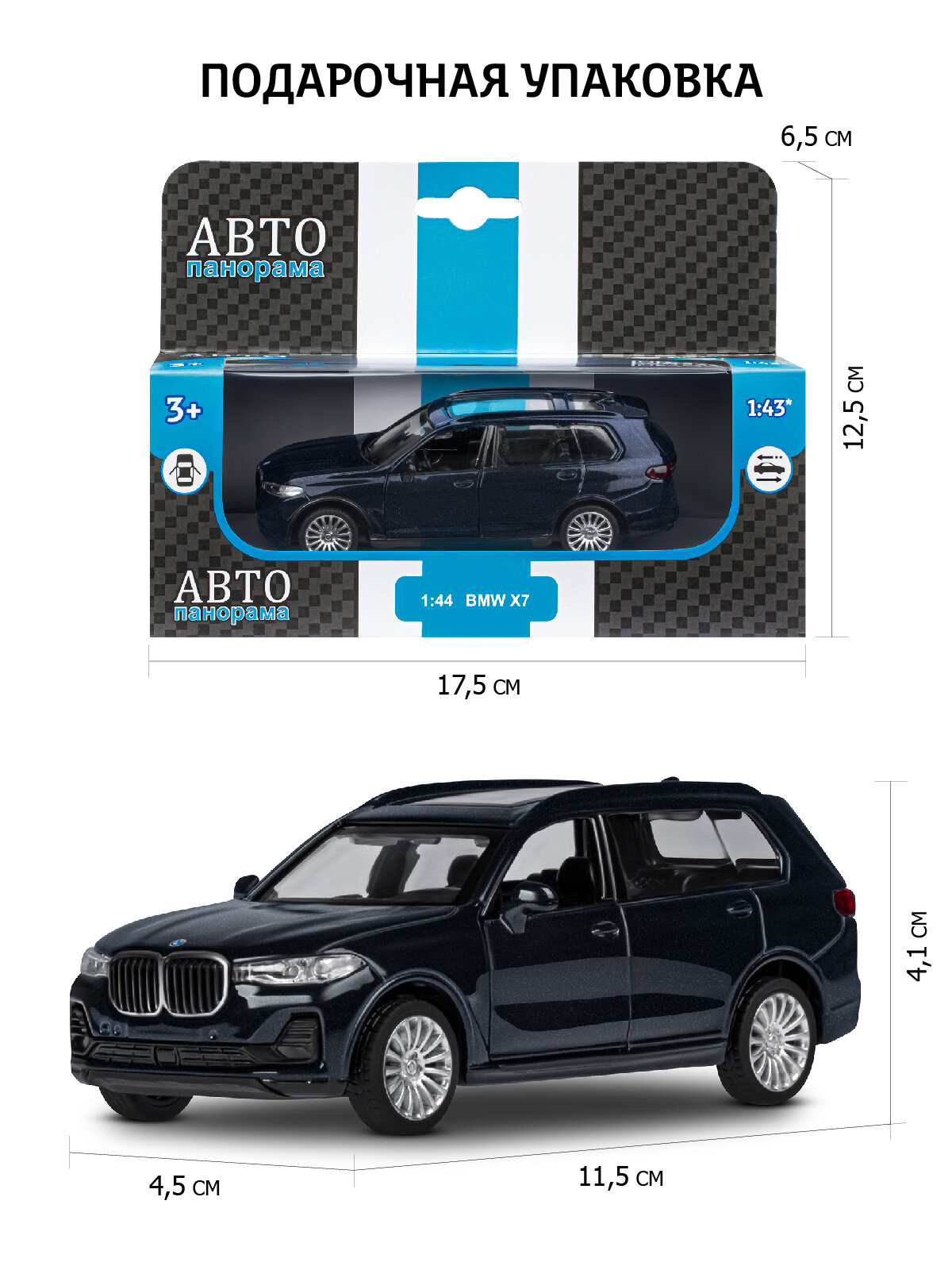 Легковой автомобиль Автопанорама BMW X7 JB1251258/JB1251256 1:44, 11 см