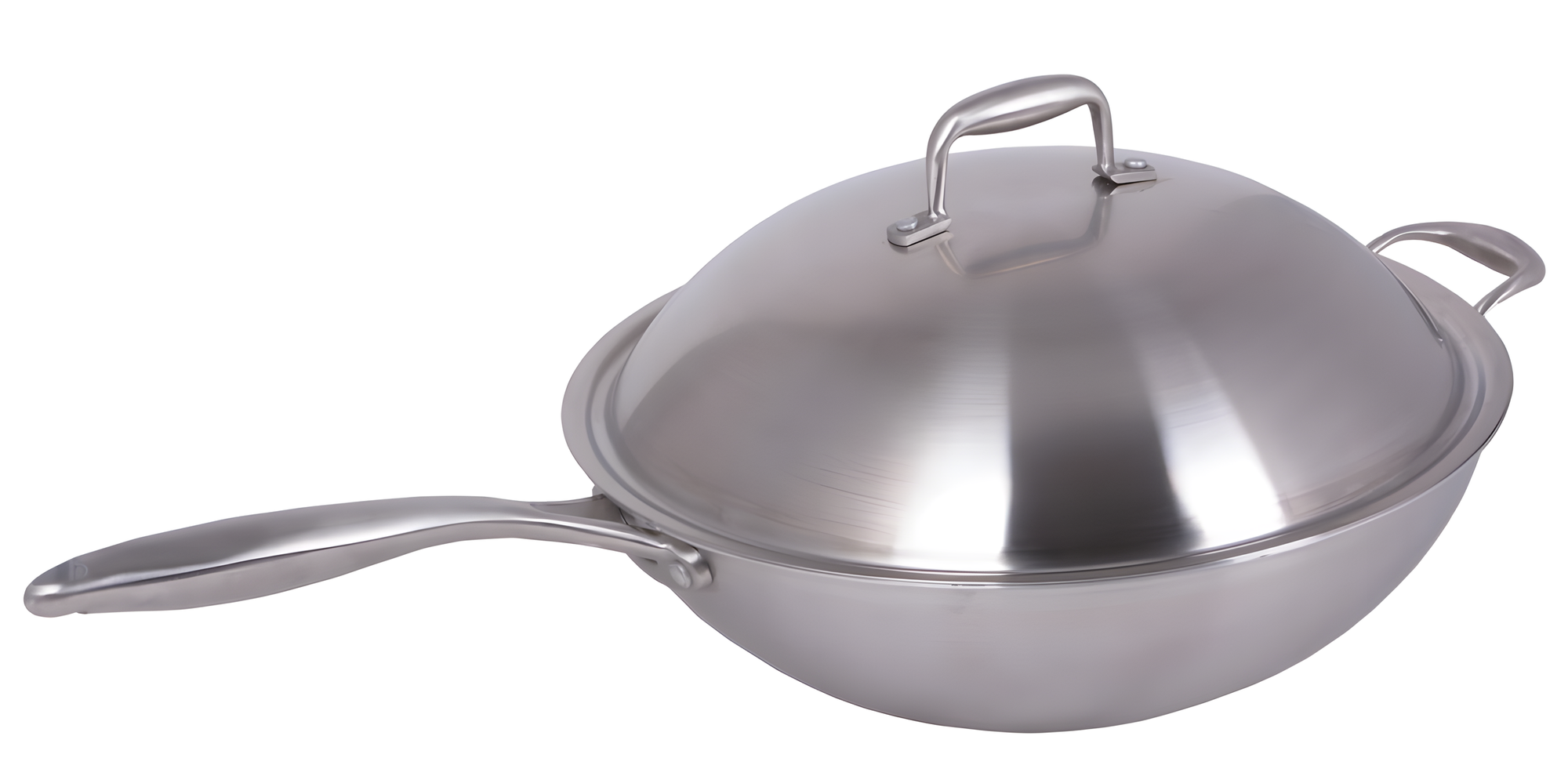 Сковорода WOK из нержавеющей стали INDOKOR WIND36BL 36см, сковородка ВОК с крышкой, для индукционных плит