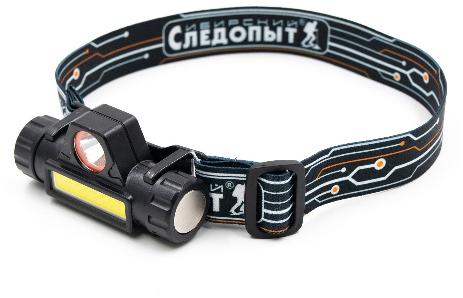 Фонарик налобный Сибирский Следопыт спектр, съёмный, 1 LED + 1 COB, аккум. 220В, USB информация: