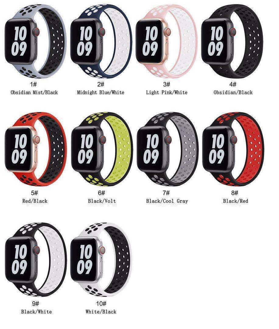 Ремешок-браслет силиконовый перфорированный Solo Loop для Apple Watch 42/44/45/49 мм, S(135мм), белый+черный (10)