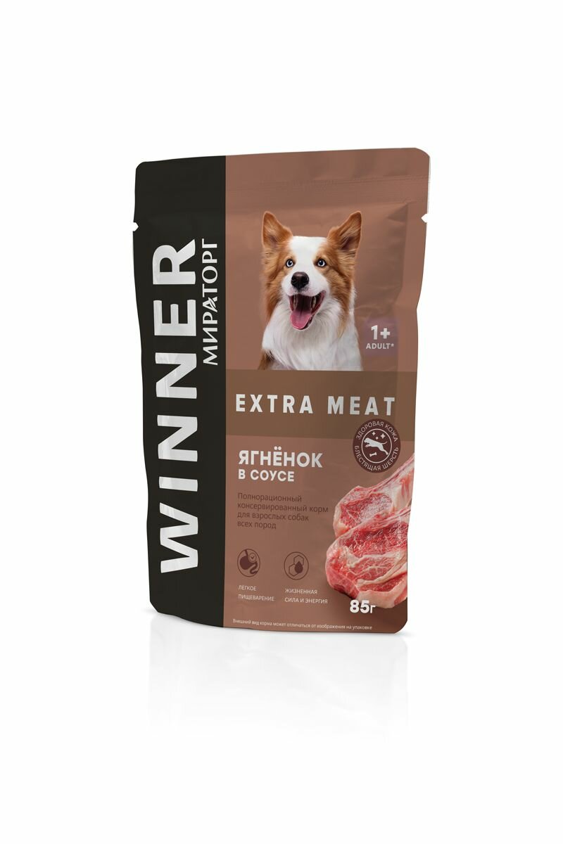 Влажный корм Winner Meat для взрослых собак всех пород Ягнёнок в соусе, 24 шт 85 гр