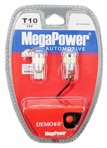 Отзывы на MEGAPOWER 10814W2БЛТ Лампа светодиодная 12V W5W T10W W2.1x9.5d 6000K бесцокольная 6 LED блистер (2шт.) с тест. MEGAPOWER