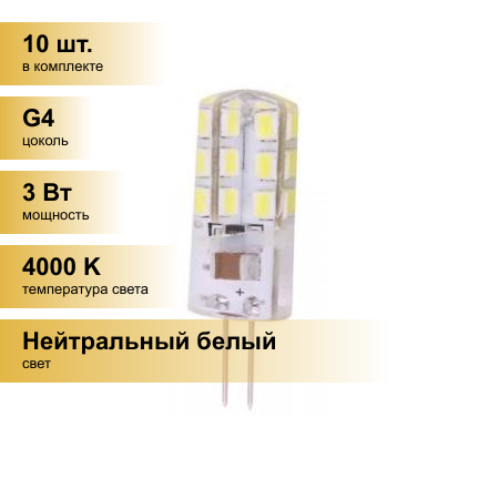 10 цен на (10 шт.) Светодиодная лампочка Jazzway G4 220V 3W(200lm) 4000K 4K 38x13 силикон .1032072