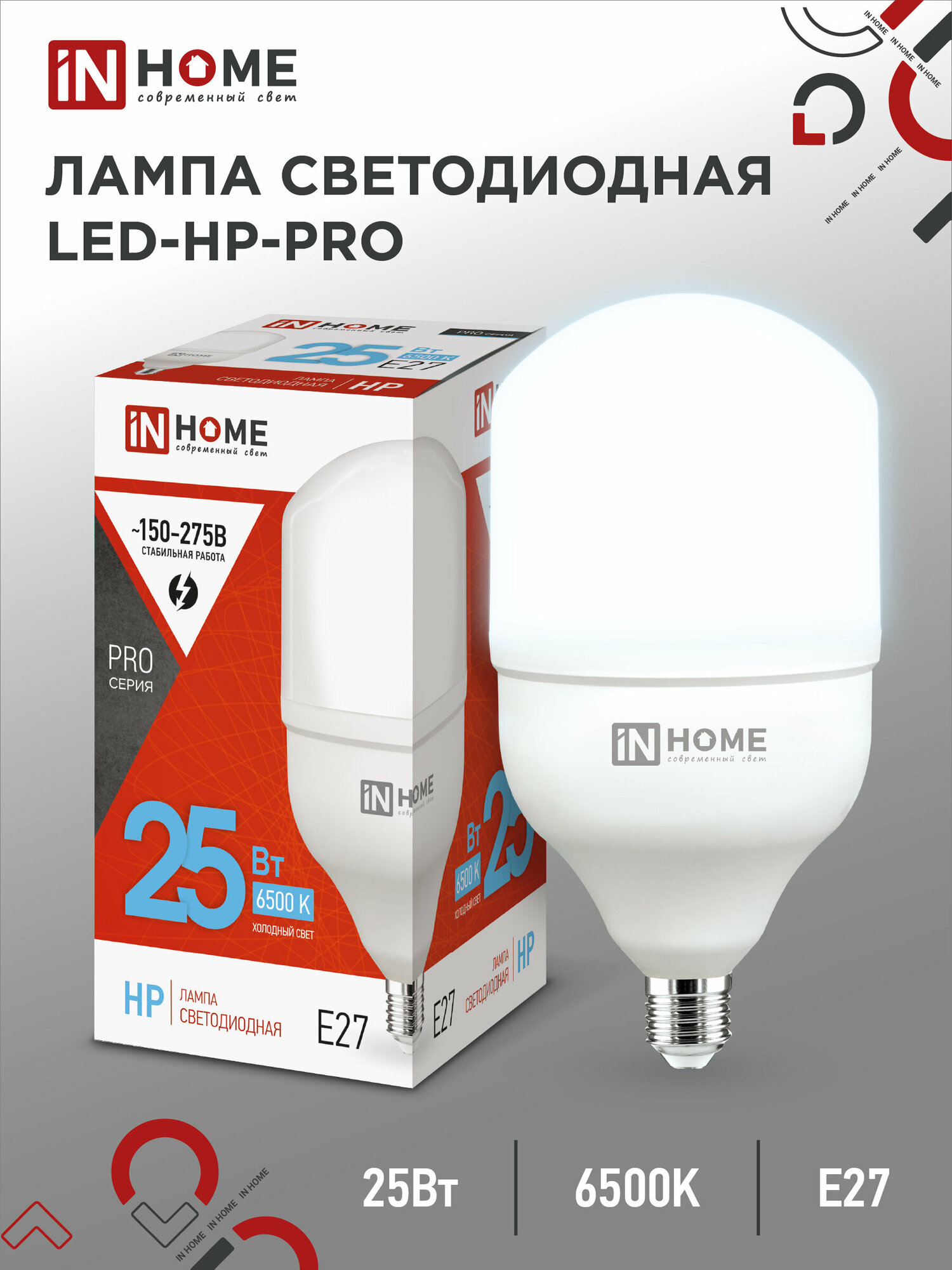Отзывы на INhome Лампа светодиодная IN HOME LED-HP-PRO, Е27, 25 Вт, 230 В, 6500 К, 2380 Лм