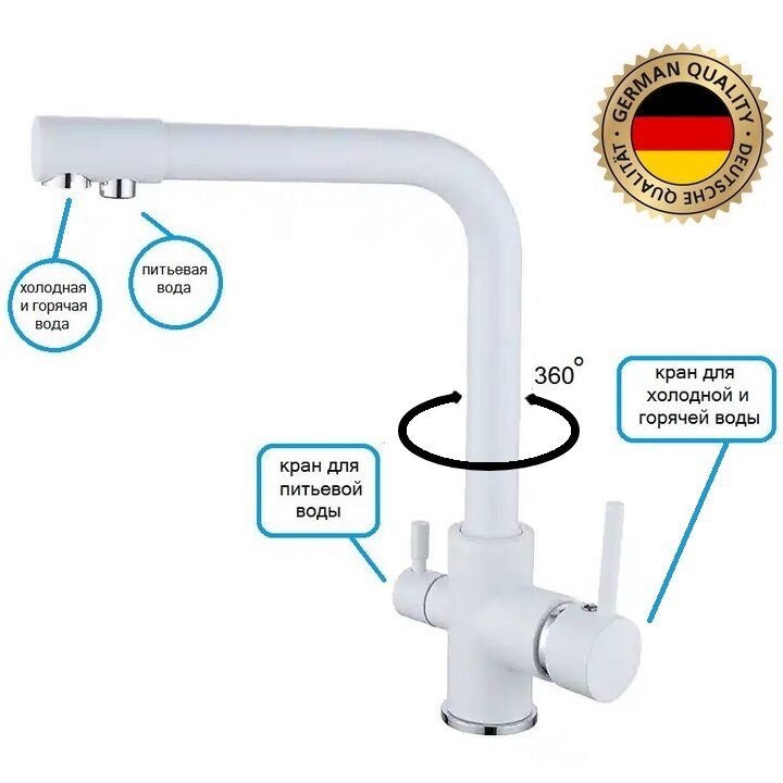 10 цен на Смеситель для кухни с фильтром для питьевой воды GMP, белый матовый