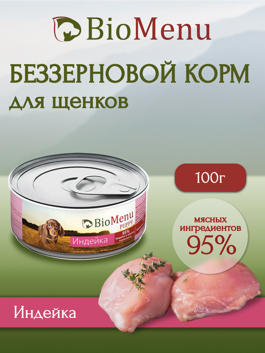 BioMenu Консервы для щенков Индейка (7394029798), 0,1 кг, 19011 286 ₽