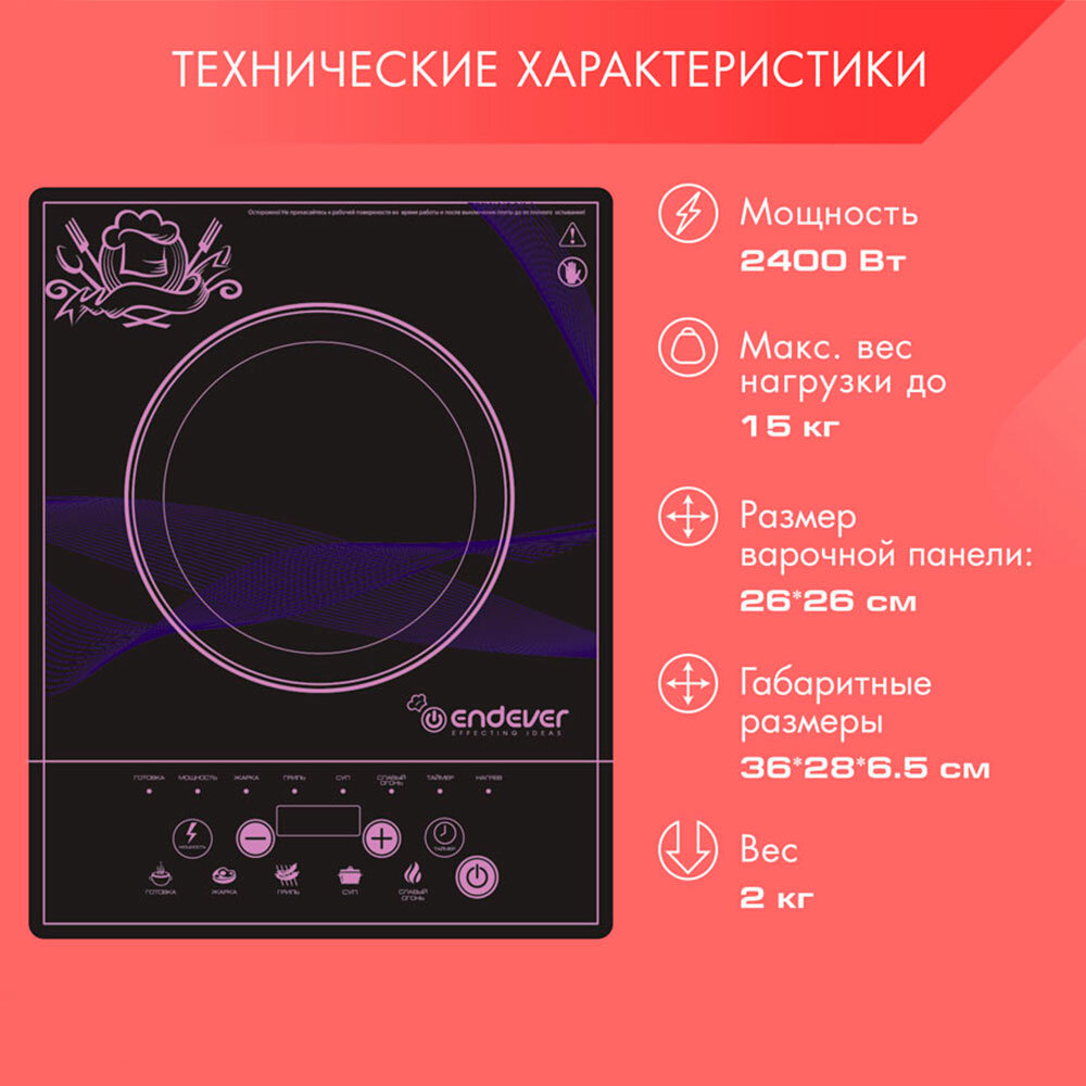 Плитка Электрическая Endever Skyline Dp-41, Черный, Мощность До 2400 Вт, 5 Автоматических Программ, Таймер 5 613 ₽