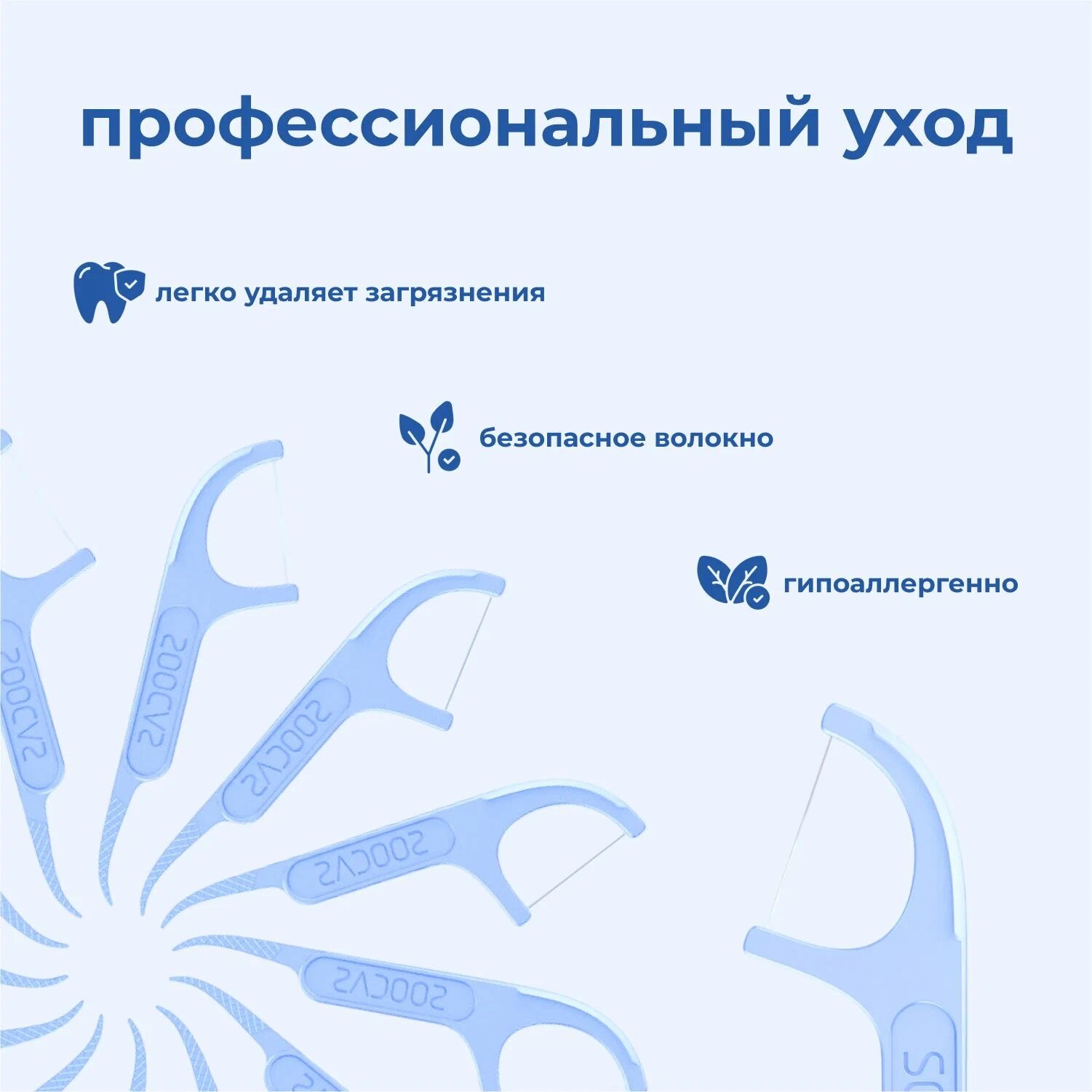 Зубная нить (зубочистки) Soocas Floss Pick (50 штук) Light Blue информация: