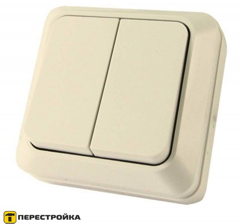 Выключатель двухклавишный Bylectrica Пралеска, брызгозащищенный, открытой установки, 6А, 250В, белый. А5 6-224.