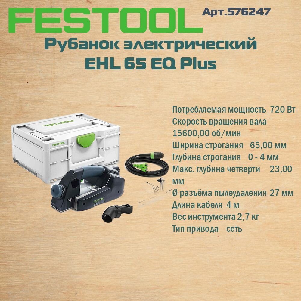 Рубанок электрический FESTOOL EHL 65 EQ Plus информация: