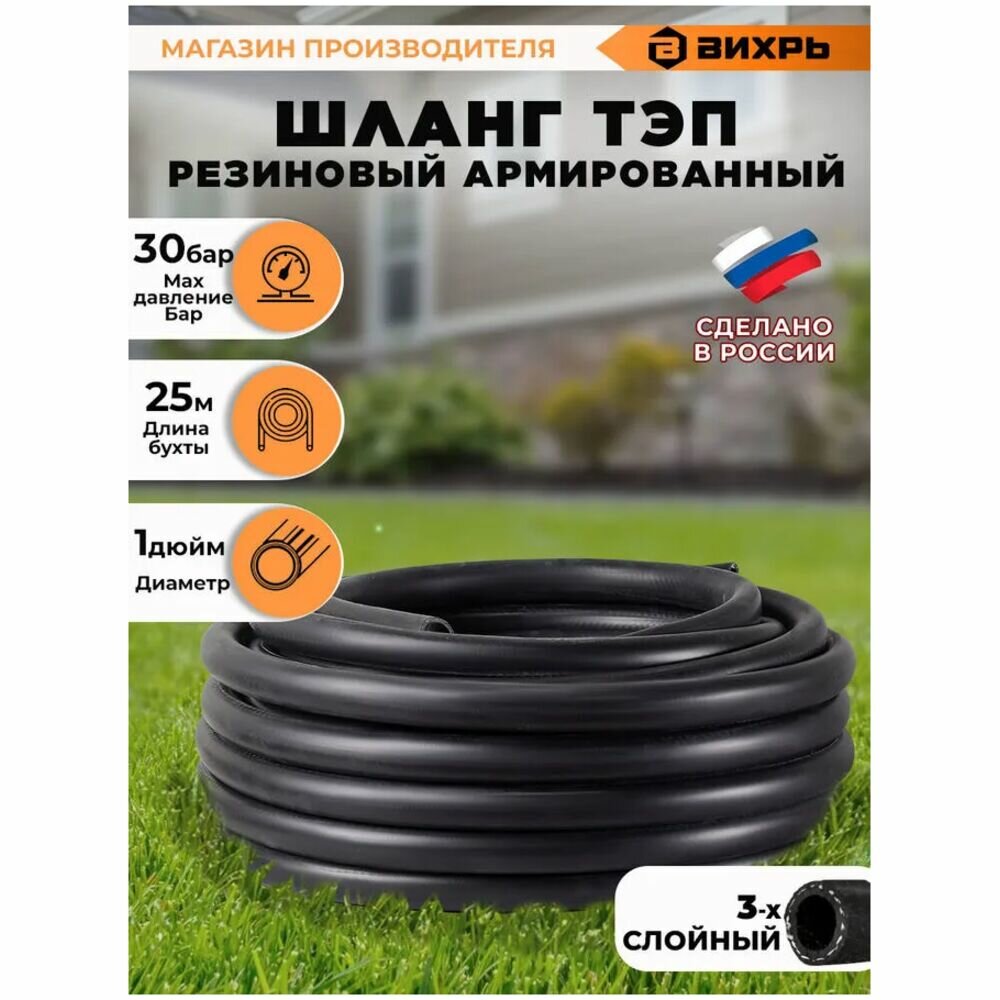 Шланг ТЭП Вихрь, армированный, 1", 25 м, черный 4 956 ₽