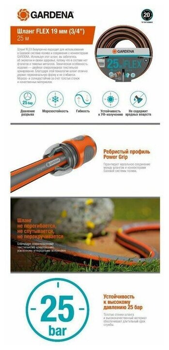 Шланг Gardena 3/4" (19мм) 25м Flex 18053-20.000.00 информация: