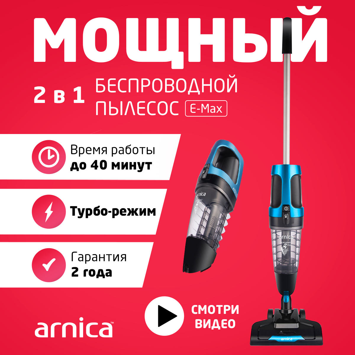 Пылесос беспроводной Arnica E-max ET11201 синий . 23 320 ₽