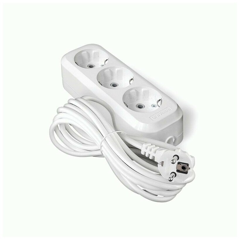 Удлинитель UNIVersal бытовой 5 метров розетки 3 гнезда с заземлением c/з 3х1 Е-303 ПВС Универсал электрический 3500 вт 220в белый, арт. 9631978