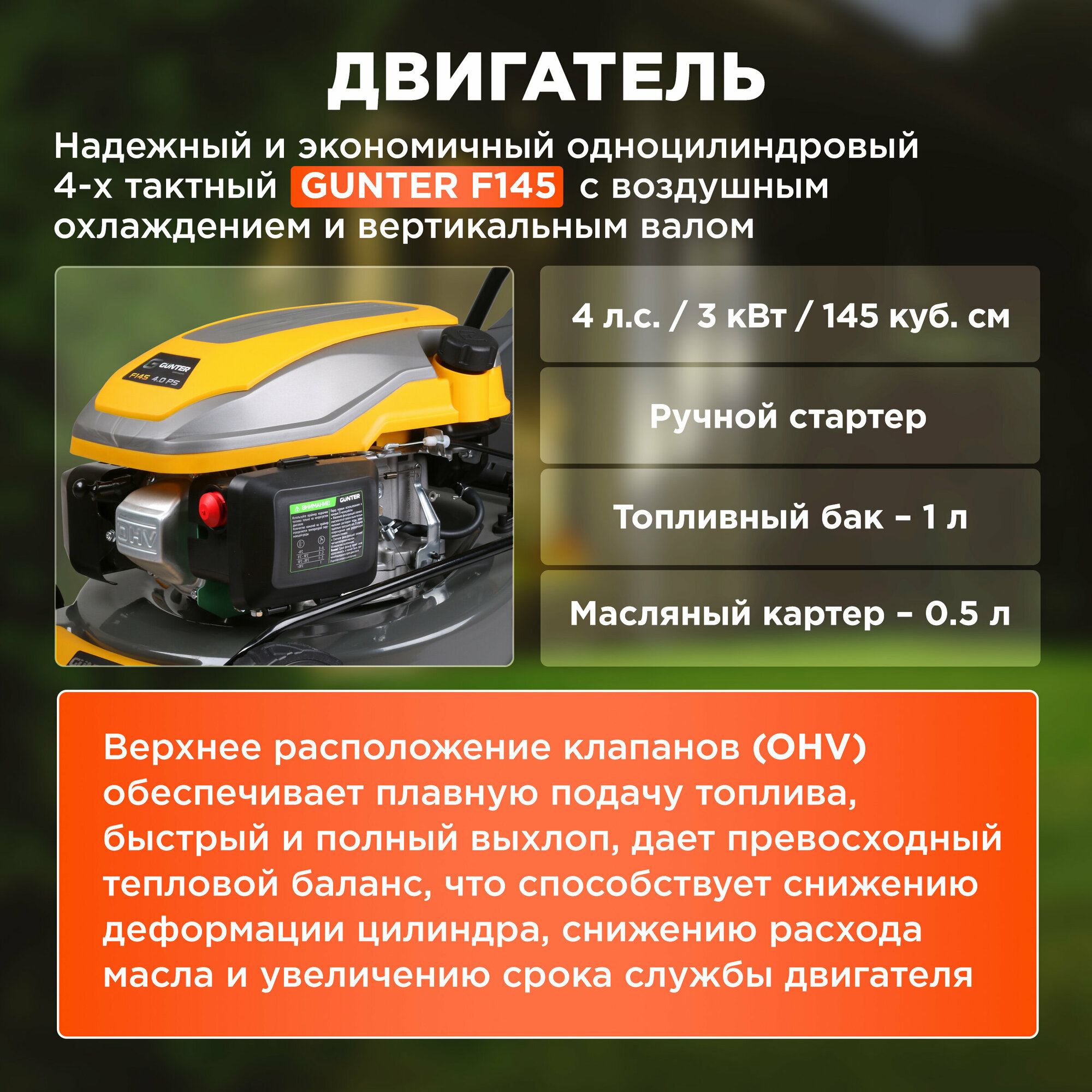 10 цен на Газонокосилка бензиновая Gunter LMB-420 (4.0 л.с., шир. 42 см, ручной привод, стальн. корпус, травос