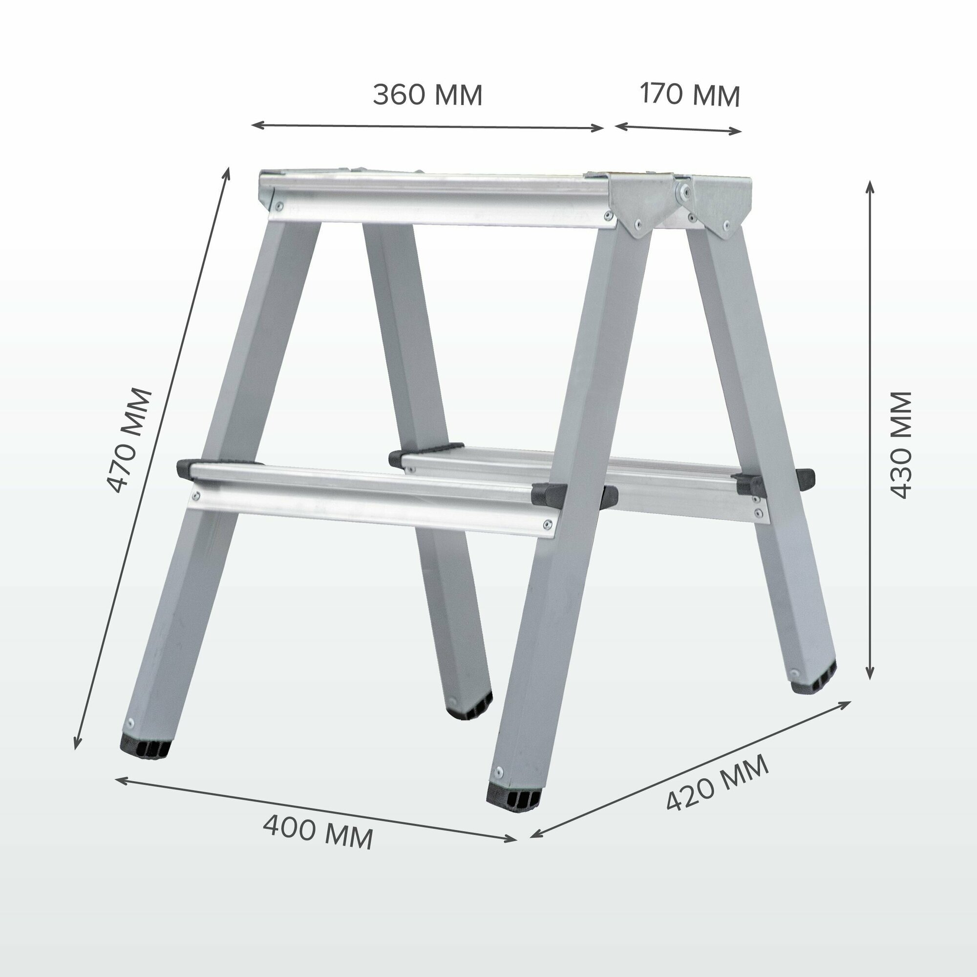 Стремянка алюминий/сталь 2 ступени 80 мм двухсторонняя 0,44 м Новая высота 100