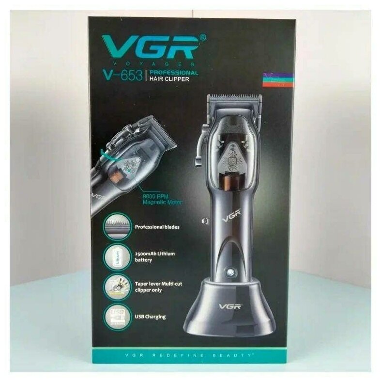 Профессиональная аккумуляторная машинка для стрижки волос с док-станцией VGR V-653 (черная) 4 000 ₽