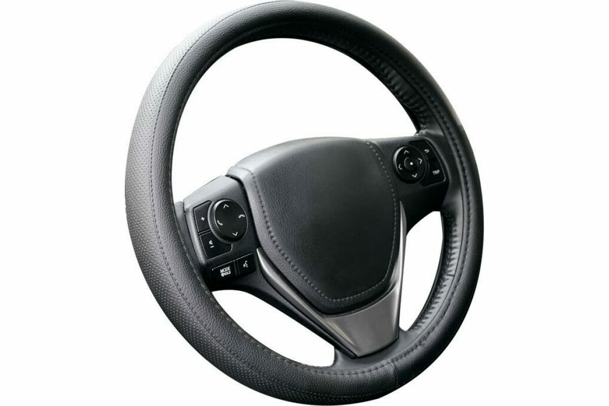 Оплетка на руль универсальная из экокожи «CARBON» М 37-39 см (чёрная, строчка чёрная) belais #21608