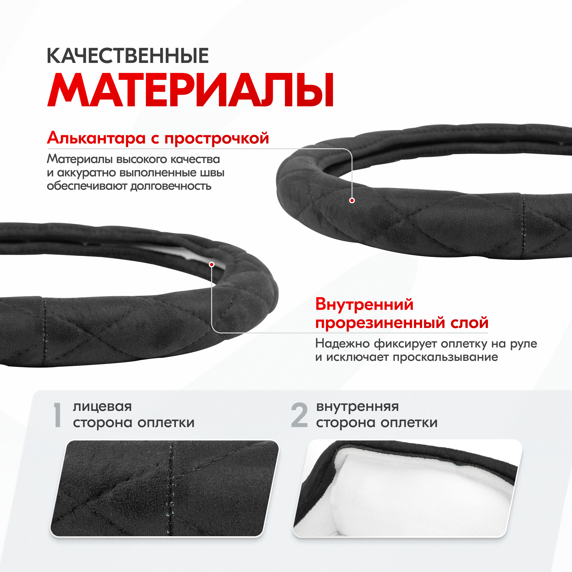 Оплетка на руль Hit-1 SKYWAY XL (42-43) черный алькантара, S01101048 информация: