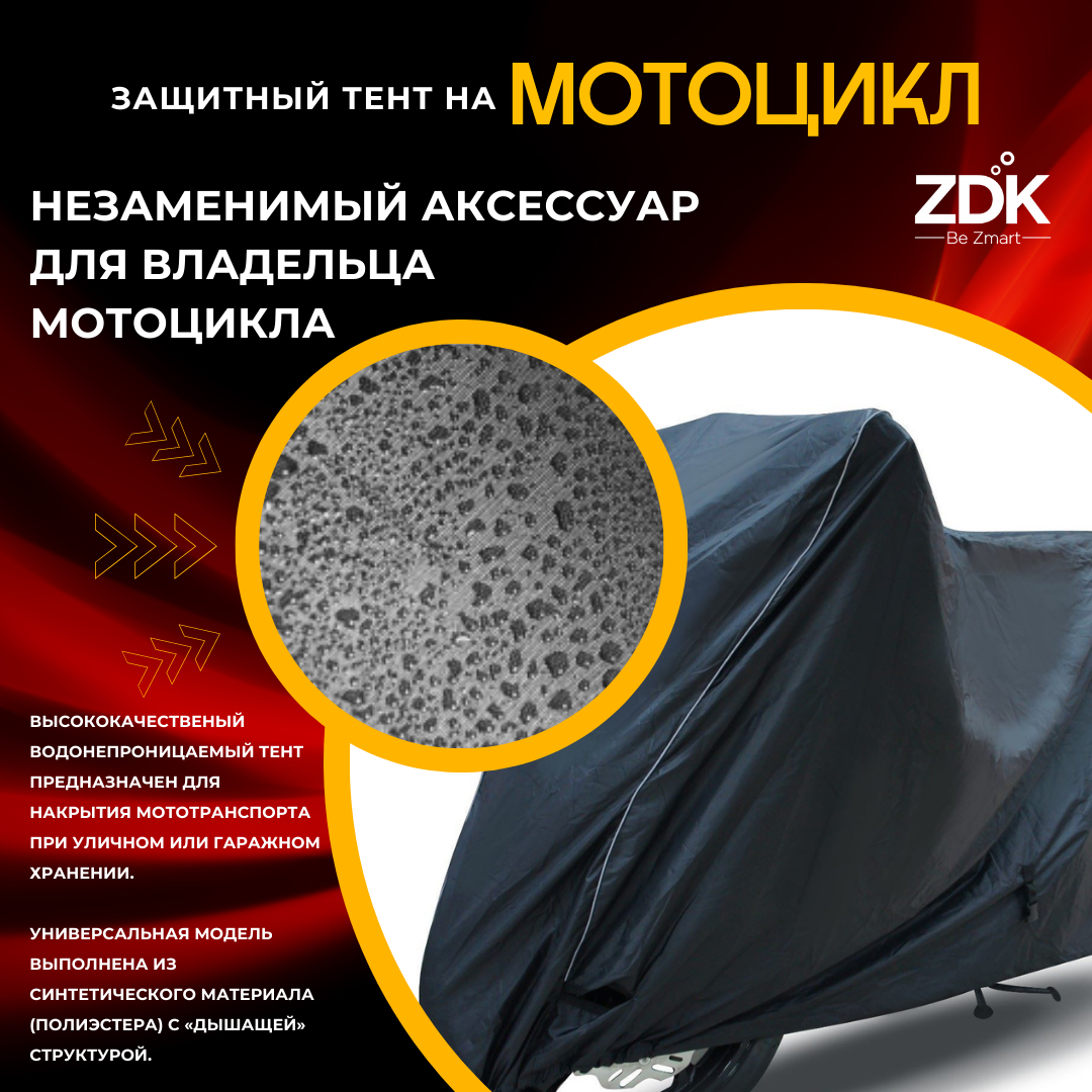 Защитный тент на мотоцикл ZDK Black, зашитный чехол для мотоцикла, Размер XXL, 265x125x105 см, полиэфирная тафта 1 448 ₽
