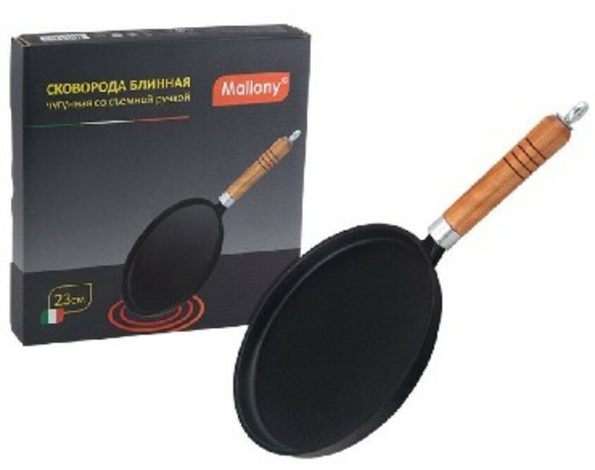 Mallony Сковорода блинная чугунная со съемной ручкой, 230 мм CP-23