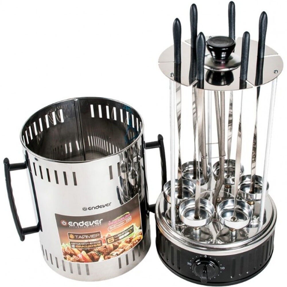 Электрошашлычница Endever Grillmaster-290/295 / 1100 Вт / до 5 кг мяса / 6 шампуров / вращение на 180 градусов