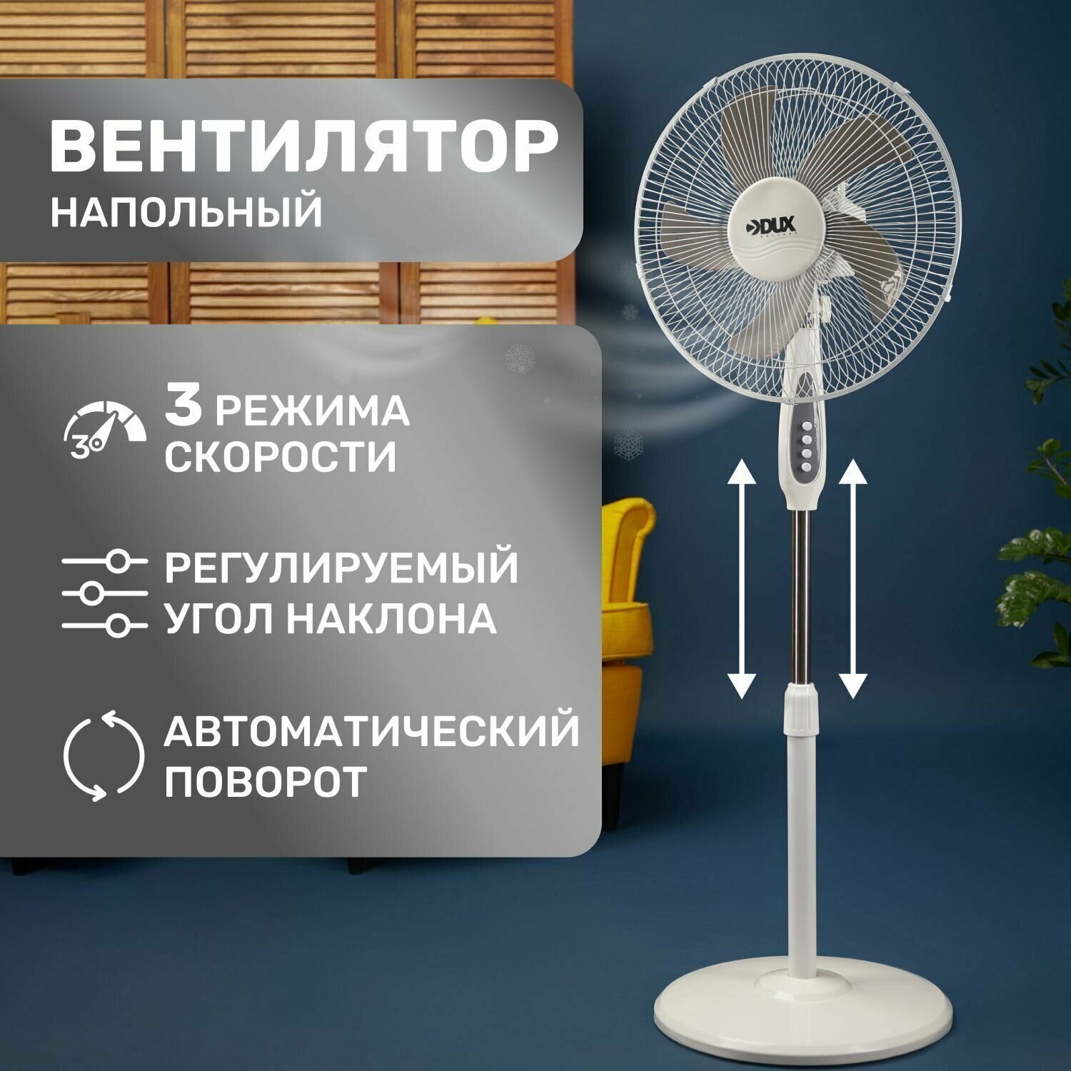 Вентилятор напольный DUX, мощность 40 Вт механический, белый, регулировка по высоте