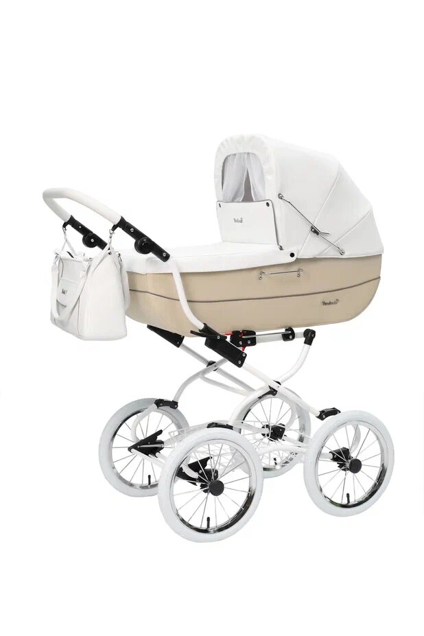 Коляска Reindeer Vintage, set 1 люлька на раме, цвет белый+бежевый V-3 (рама серебро с черными колесами), всесезон 62 900 ₽