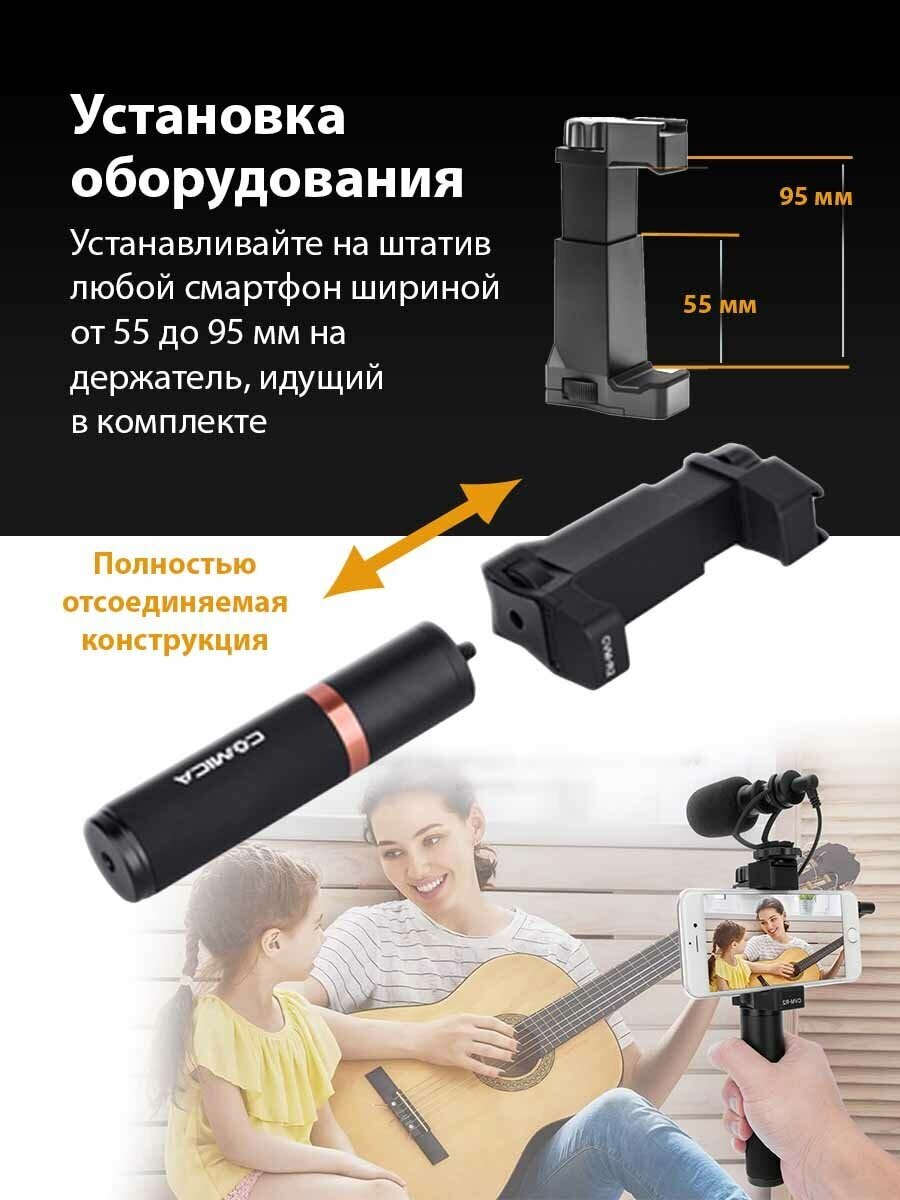 Радиосистема Comica CVM-WS50, комплектация: микрофон, ручной передатчик, приемник, разъем: mini jack 3.5 mm